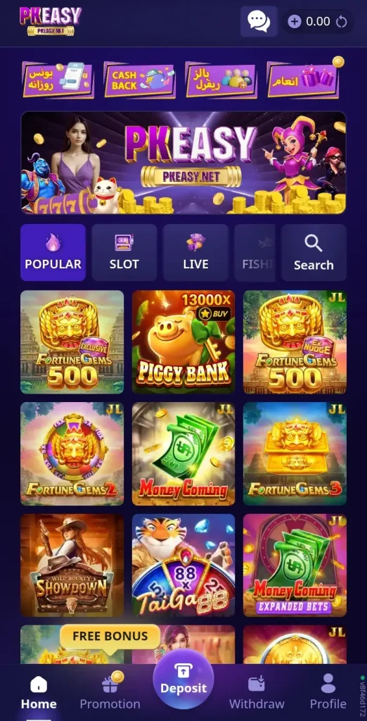 PK Easy Game offers several features that make it appealing to Pakistani users: